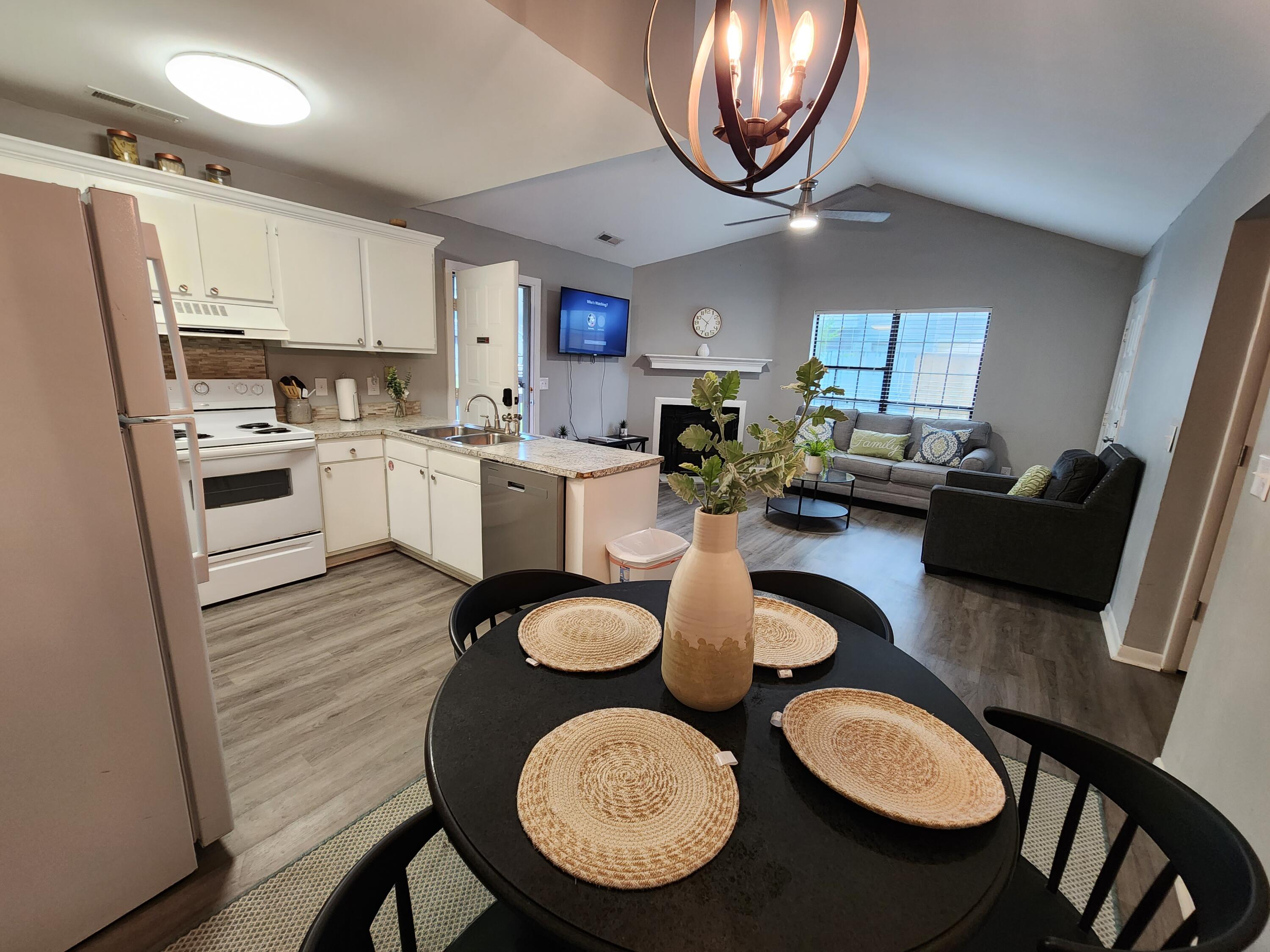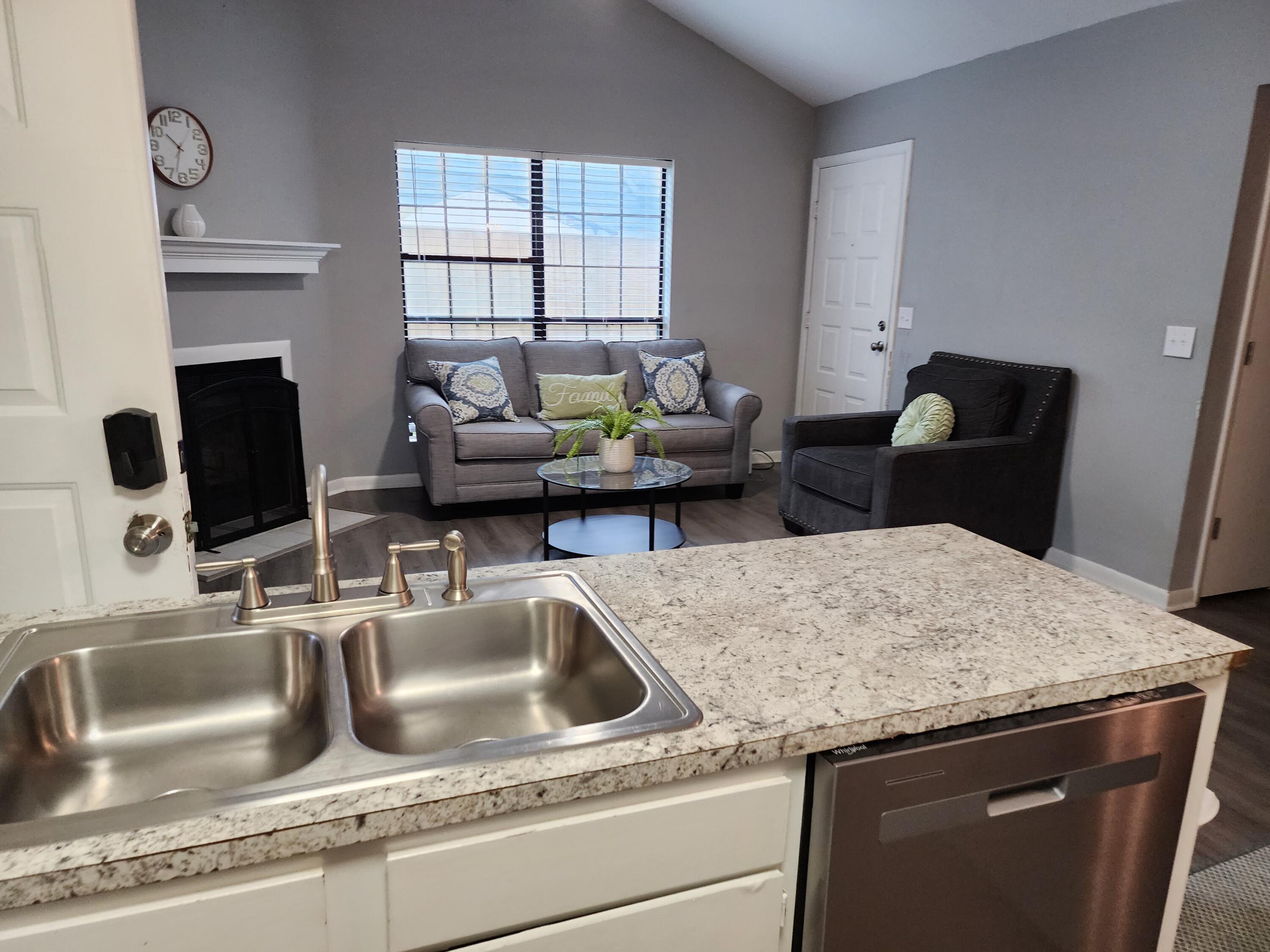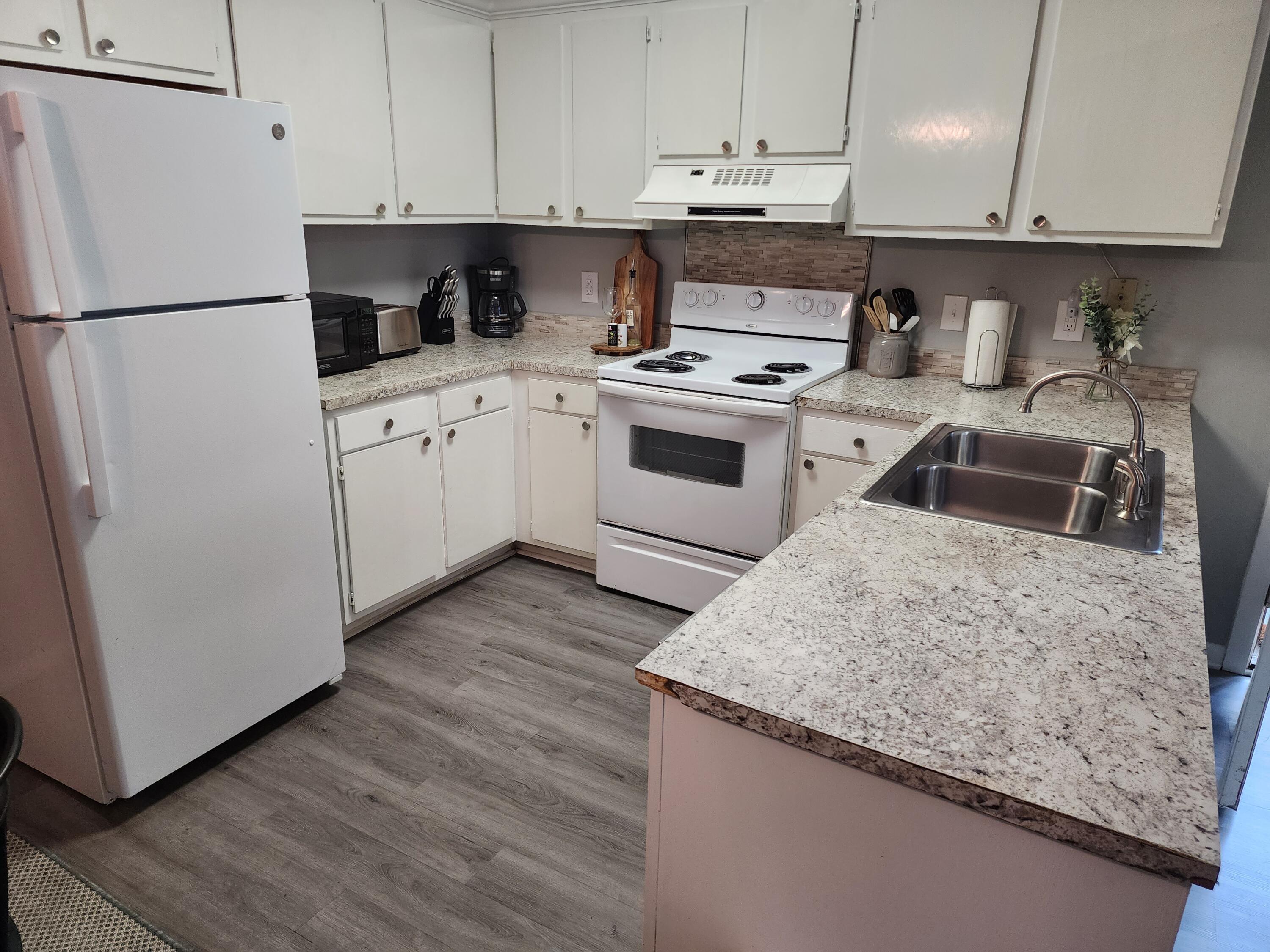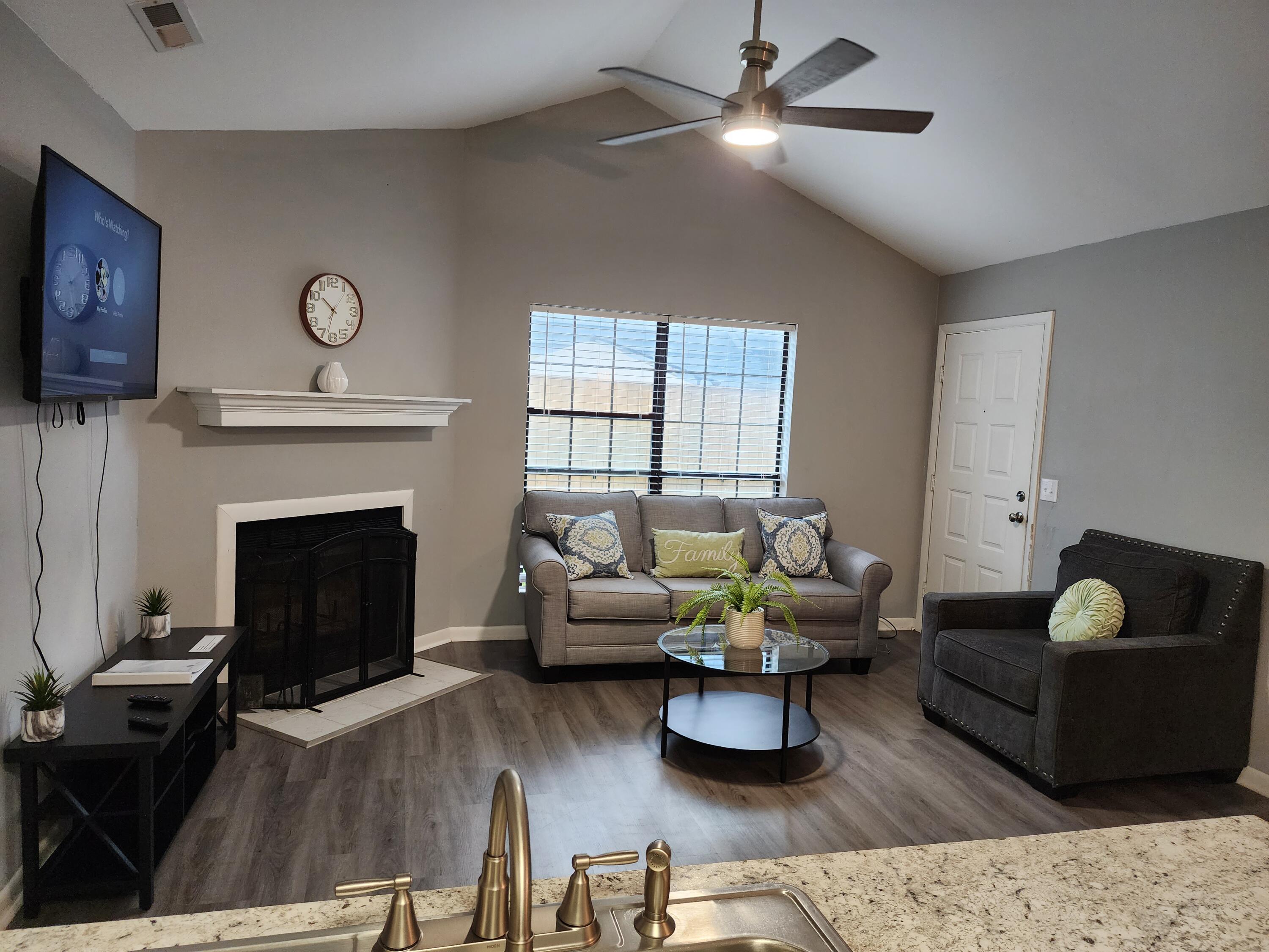Act quickly to claim this beautifully updated condo, where an open floor plan amplifies the living space beyond the actual square footage. From the moment you enter through the welcoming front door, the unity of the living and kitchen area is immediately apparent, all atop fresh, new vinyl laminate flooring that exudes modern charm.Centered in the living area is an updated wood-burning fireplace, complete with a fitted mantel and tile work, offering a cozy atmosphere for relaxation. The home continues its uniform beauty with laminate flooring extending across all rooms, marrying durability with contemporary flair.The two bedrooms provide intimate space that feels private and serene. Both rooms boast sufficient closet space for essentials and are complemented by two updated bathrooms featuring the latest fixtures, ensuring convenience and style.