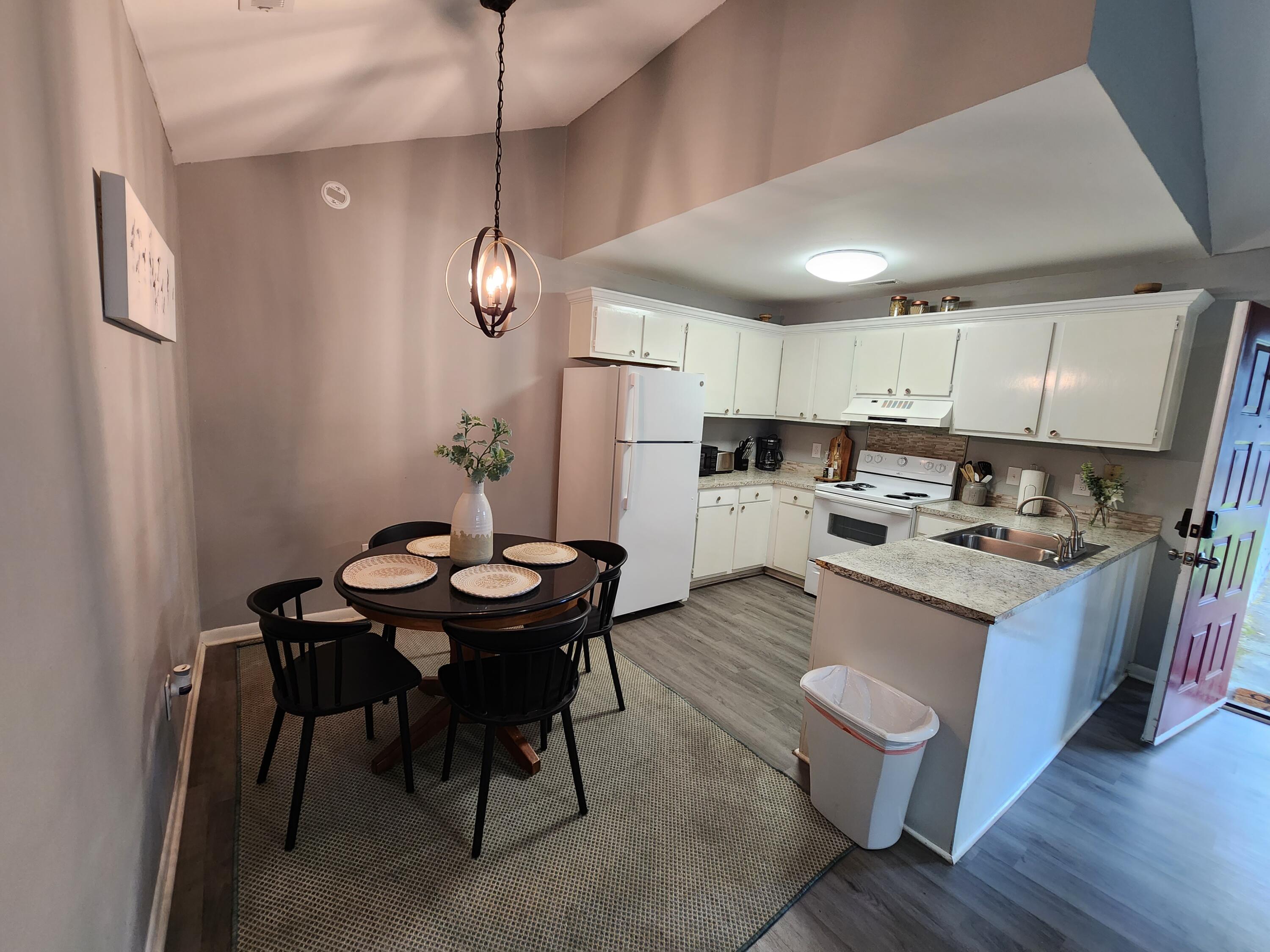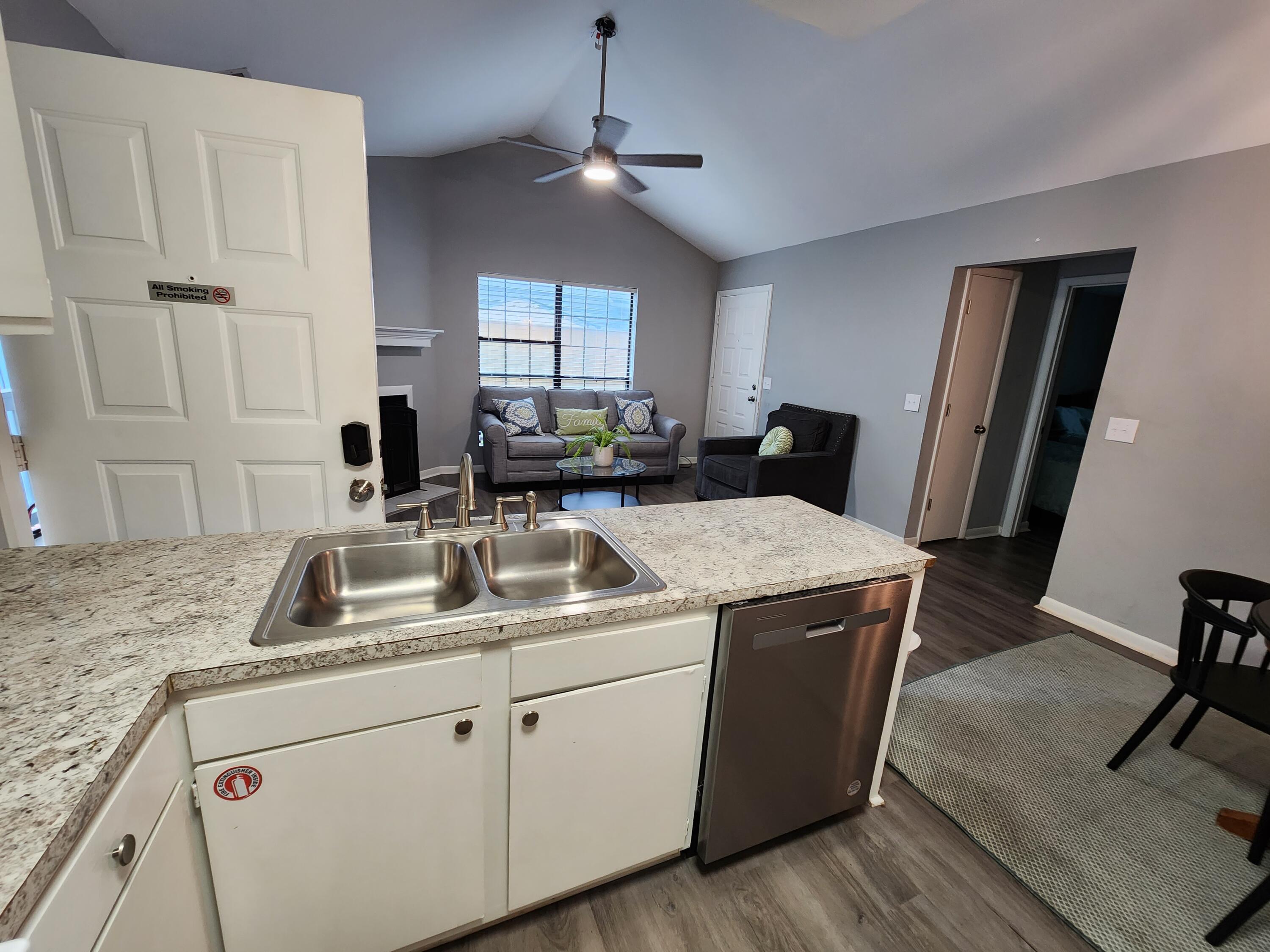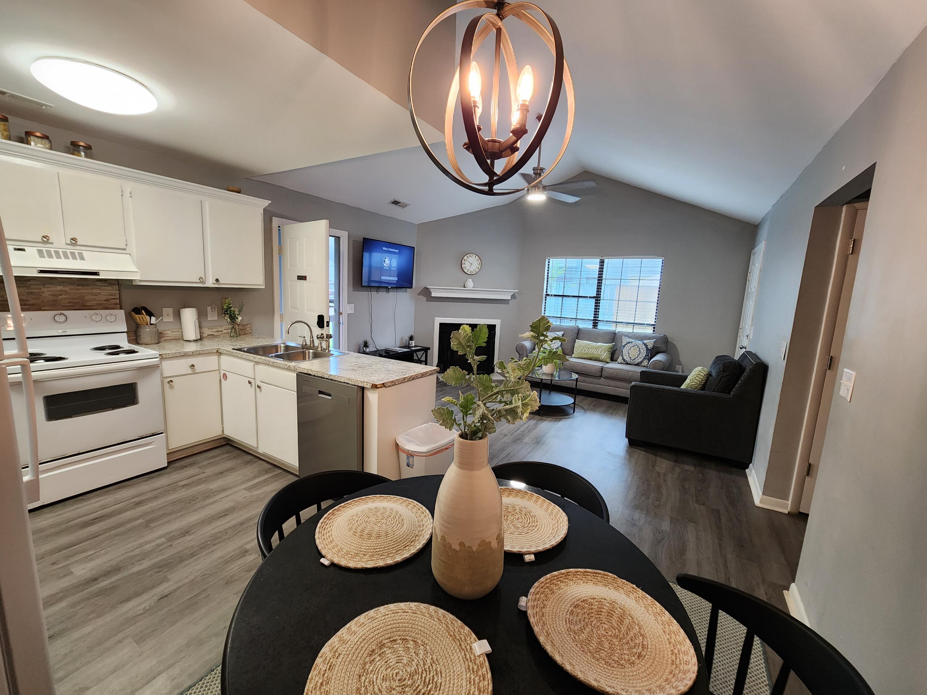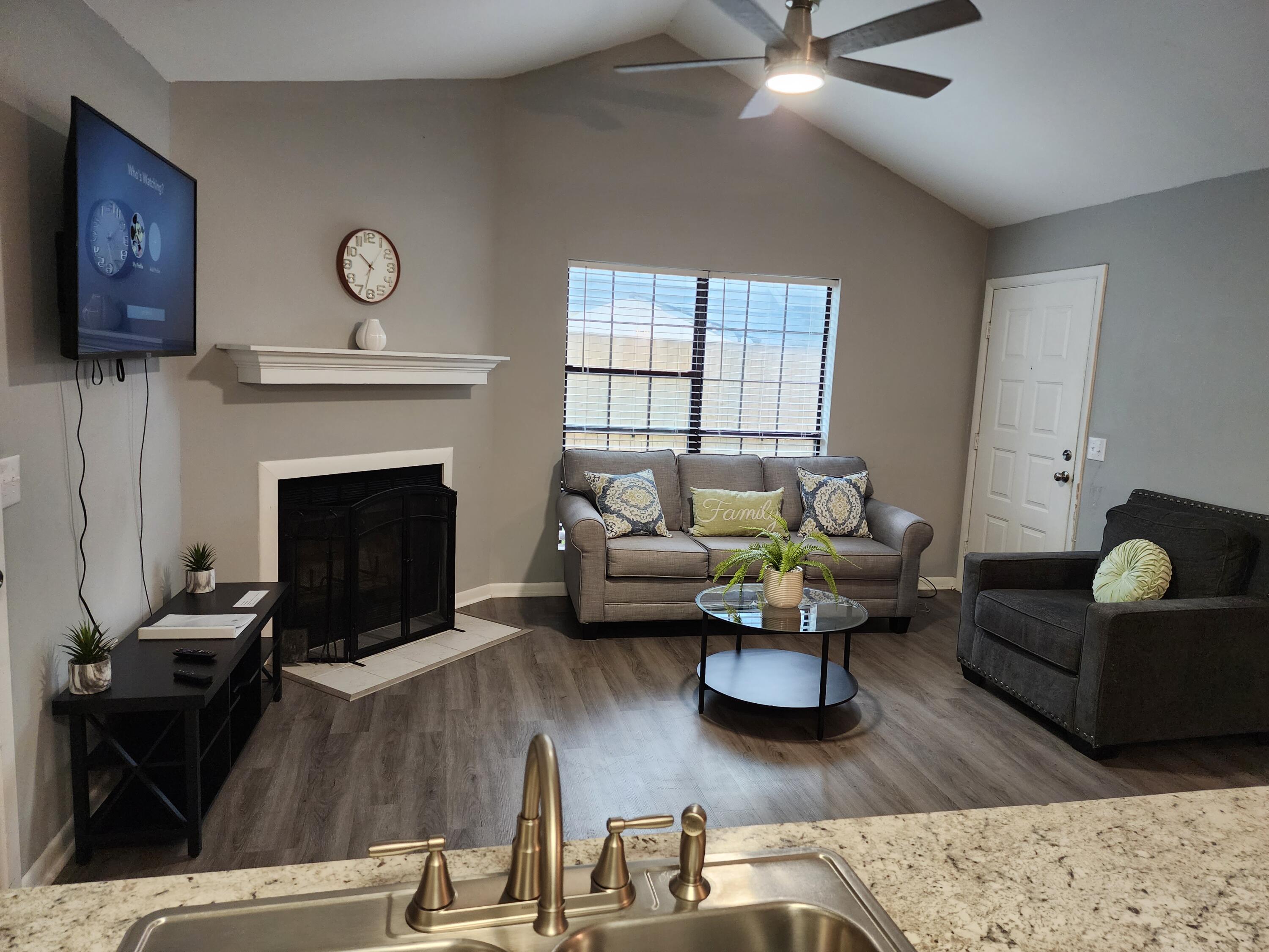 Act quickly to claim this beautifully updated condo, where an open floor plan amplifies the living space beyond the actual square footage. From the moment you enter through the welcoming front door, the unity of the living and kitchen area is immediately apparent, all atop fresh, new vinyl laminate flooring that exudes modern charm.Centered in the living area is an updated wood-burning fireplace, complete with a fitted mantel and tile work, offering a cozy atmosphere for relaxation. The home continues its uniform beauty with laminate flooring extending across all rooms, marrying durability with contemporary flair.The two bedrooms provide intimate space that feels private and serene. Both rooms boast sufficient closet space for essentials and are complemented by two updated bathrooms featuring the latest fixtures, ensuring convenience and style.