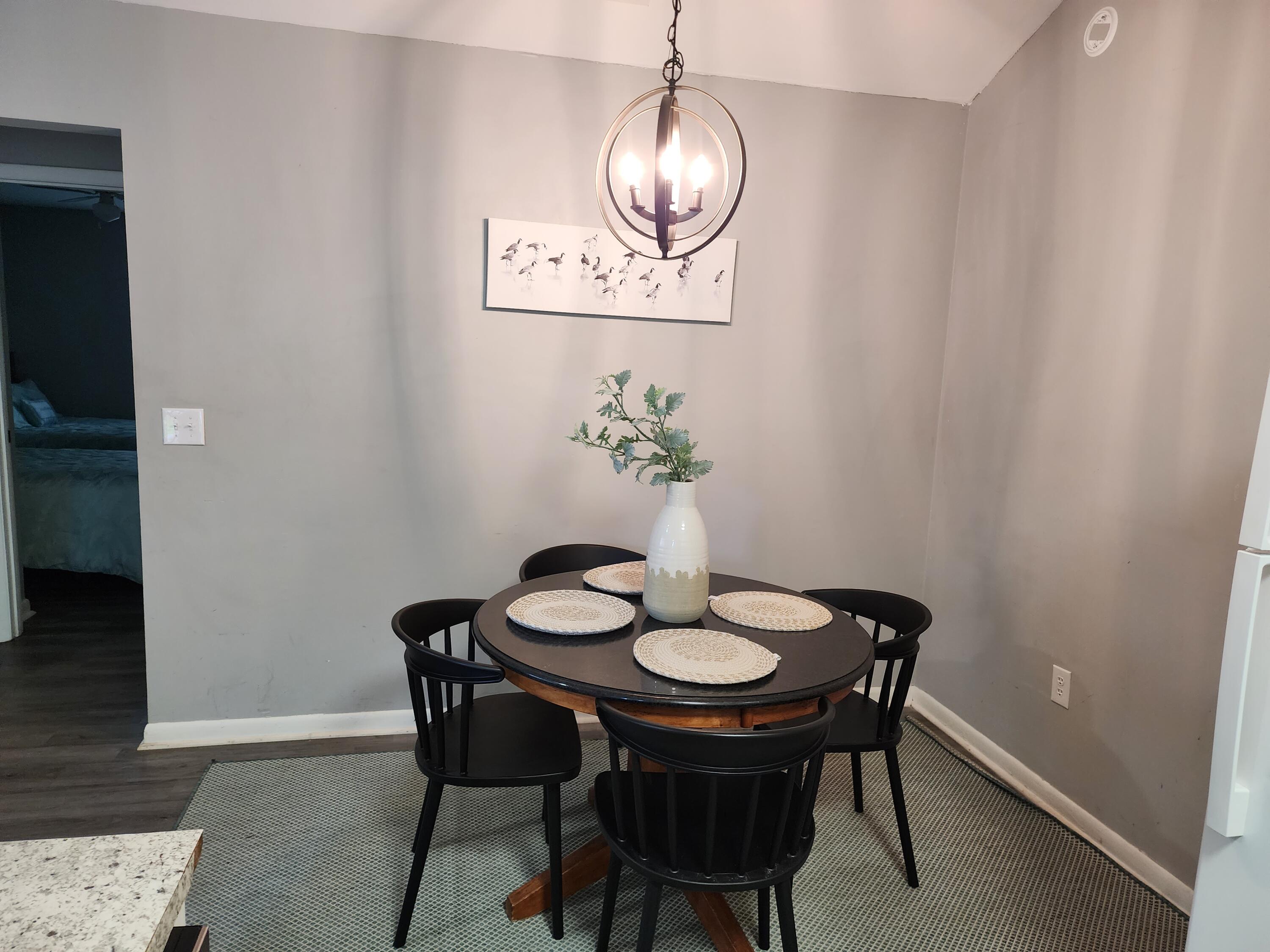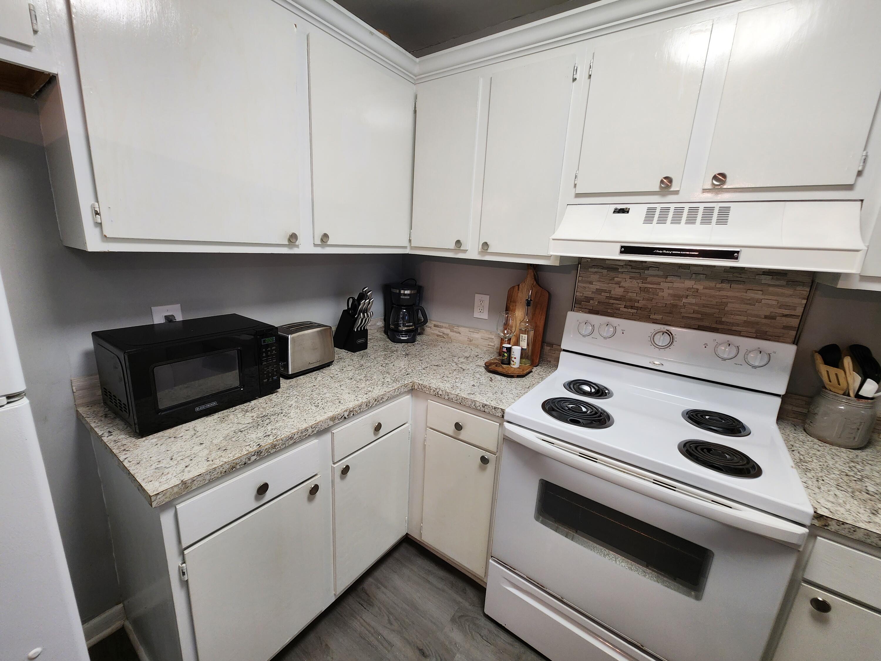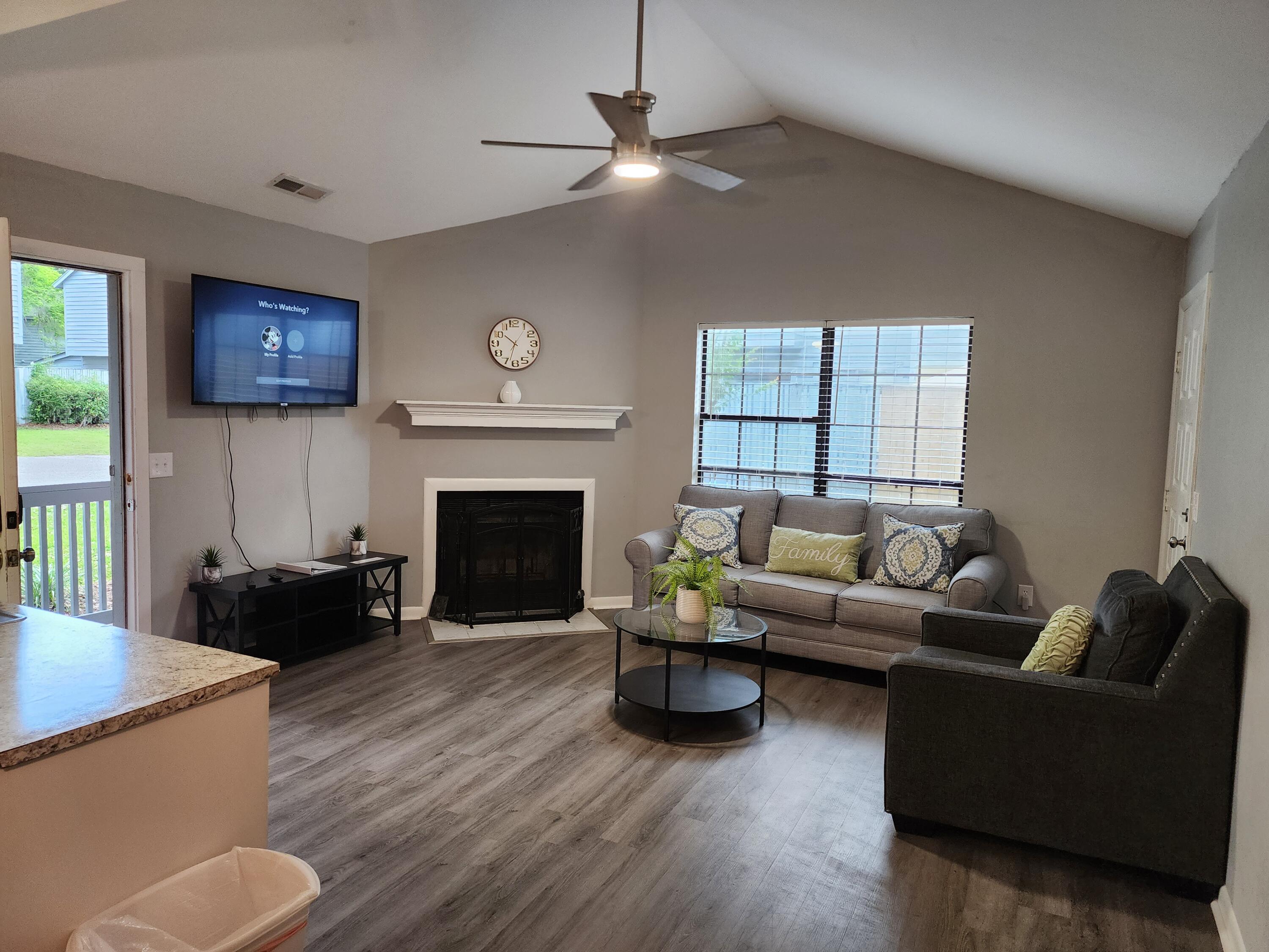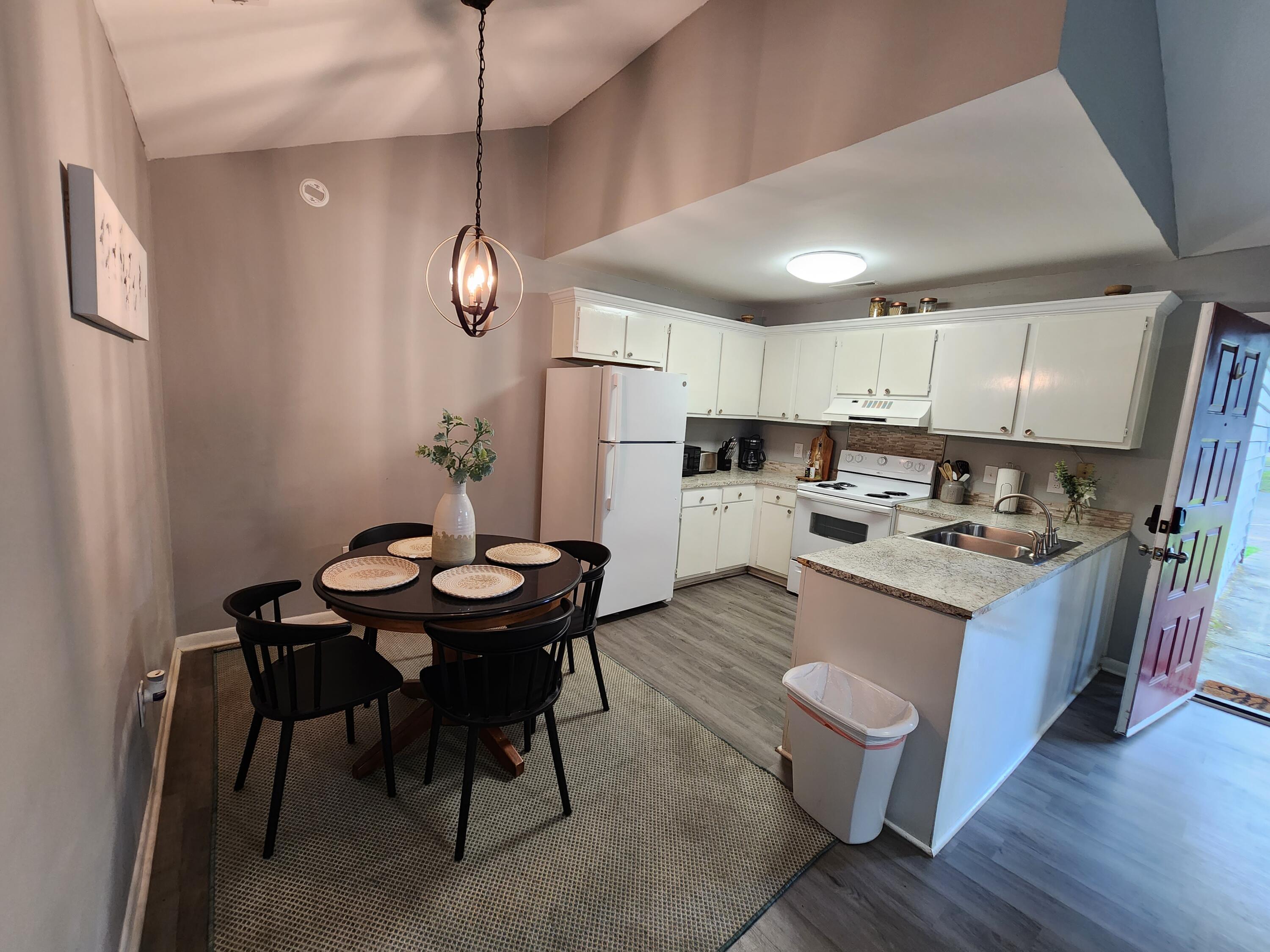 Act quickly to claim this beautifully updated condo, where an open floor plan amplifies the living space beyond the actual square footage. From the moment you enter through the welcoming front door, the unity of the living and kitchen area is immediately apparent, all atop fresh, new vinyl laminate flooring that exudes modern charm.Centered in the living area is an updated wood-burning fireplace, complete with a fitted mantel and tile work, offering a cozy atmosphere for relaxation. The home continues its uniform beauty with laminate flooring extending across all rooms, marrying durability with contemporary flair.The two bedrooms provide intimate space that feels private and serene. Both rooms boast sufficient closet space for essentials and are complemented by two updated bathrooms featuring the latest fixtures, ensuring convenience and style.
